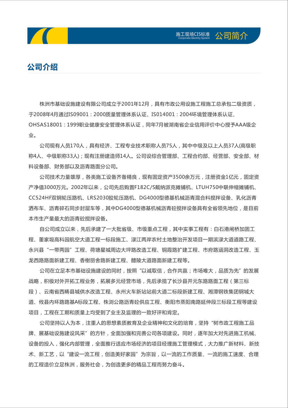 株洲市基礎設施建設有限公司施工現(xiàn)場CIS標準