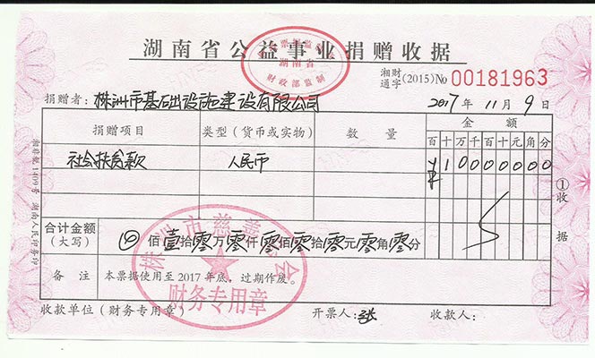 株洲市基礎(chǔ)設(shè)施建設(shè)有限公司將"解人之所困,幫人所憂"的扶貧理念落實(shí)到實(shí)際中,將扶貧款打到株洲市慈善總會賬戶中,貢獻(xiàn)出企業(yè)的一份力量。