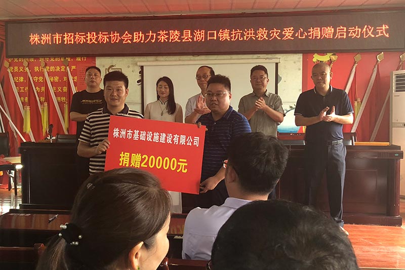 "一方有難,八方支援",為幫助受災(zāi)群眾渡過難關(guān)、重建家園。7月20日上午,我司參加招投標(biāo)協(xié)會(huì)赴茶陵縣湖口鎮(zhèn)舉行抗洪救災(zāi)愛心捐贈(zèng)儀式,捐贈(zèng)金額共計(jì)2萬整,以此來表達(dá)我司對湖口鎮(zhèn)受災(zāi)群眾的深切關(guān)心和親切的慰問。