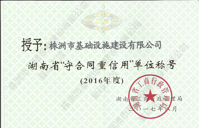 2016年度守合同重信用證書