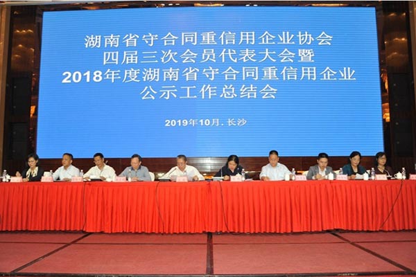 2019年10月10日,湖南省守合同重信用企業(yè)協(xié)會(huì)四屆三次會(huì)員代表大會(huì)暨2018年度湖南省守合同重信用企業(yè)公示工作總結(jié)會(huì)在長(zhǎng)沙召開(kāi)。省發(fā)改委財(cái)金處副處長(zhǎng)、省信用體系建設(shè)管理辦公室主任張傳德,省民政廳社會(huì)組織管理局局長(zhǎng)朱志明,省市場(chǎng)監(jiān)管局網(wǎng)監(jiān)處處長(zhǎng)賀然出席并講話,協(xié)會(huì)會(huì)長(zhǎng)談毅作工作報(bào)告,協(xié)會(huì)黨支部書記朱海蘭通報(bào)2018年度湖南省守合同重信用企業(yè)公示工作情況,協(xié)會(huì)秘書長(zhǎng)陳娟主持會(huì)議。
