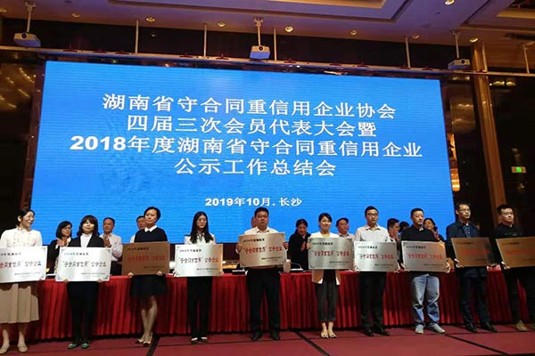 會(huì)議修改了章程、增補(bǔ)了理事,夯實(shí)協(xié)會(huì)的基礎(chǔ)工作,為協(xié)會(huì)增添了新的活力。中聯(lián)重科股份有限公司、湖南省第五工程有限公司作為優(yōu)秀企業(yè)代表發(fā)言,他們各自從本單位的實(shí)際出發(fā),從多個(gè)方面介紹企業(yè)開(kāi)展守合同重信用活動(dòng)的經(jīng)驗(yàn)和體會(huì)。會(huì)議還對(duì)50家省守重公示企業(yè)代表舉行了授牌儀式。